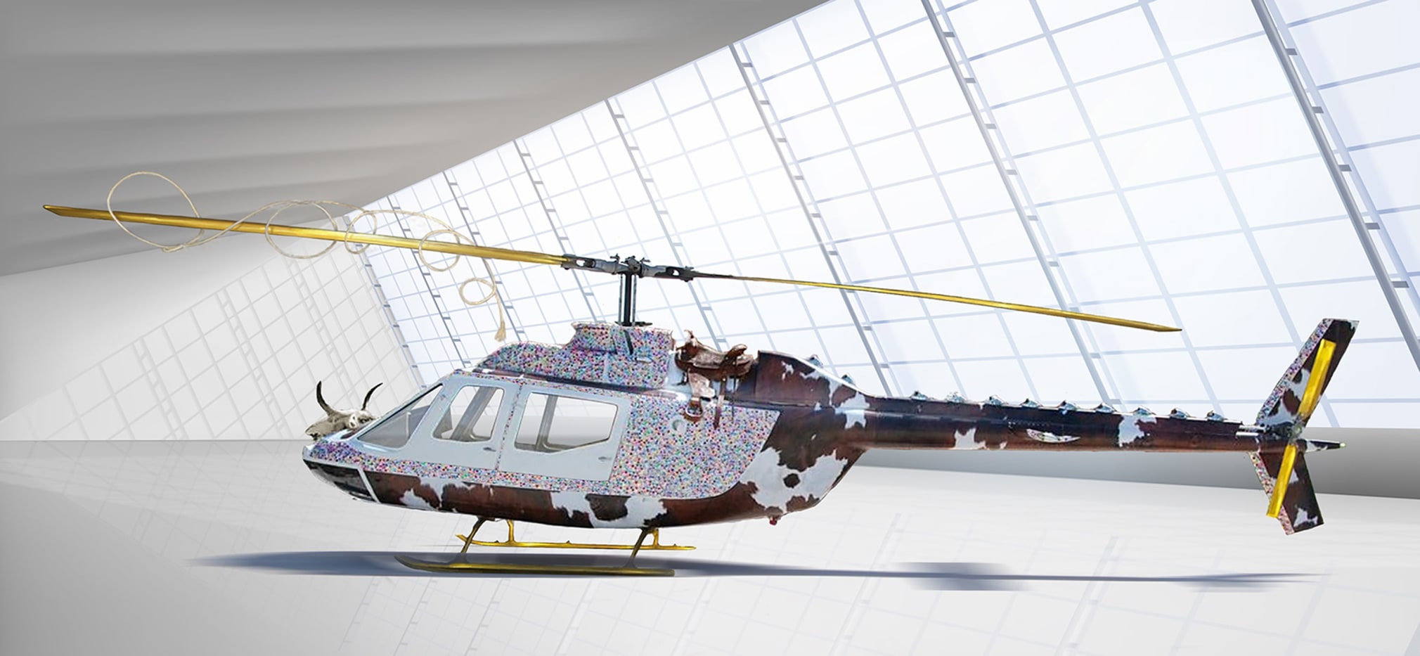 From Maloney’s imagination to its ground-level mount, Ride-em-Copter speaks of the possibilities of 21st-century cushiness and the enduring popularity of private aircraft. The gleaming eggbeater is set to show – and stun.