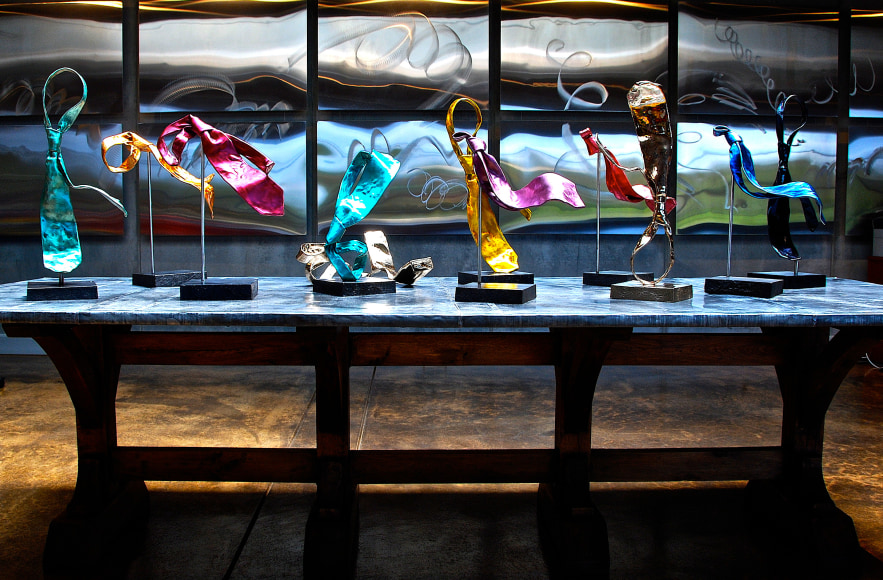 Having previously worked in bronze, I realized that the perfect patina of the medium could translate as beautiful as silk.  As many of my men’s store customers used to say: “I can’t decide, I like them all; I’ll take one of each, please!”
